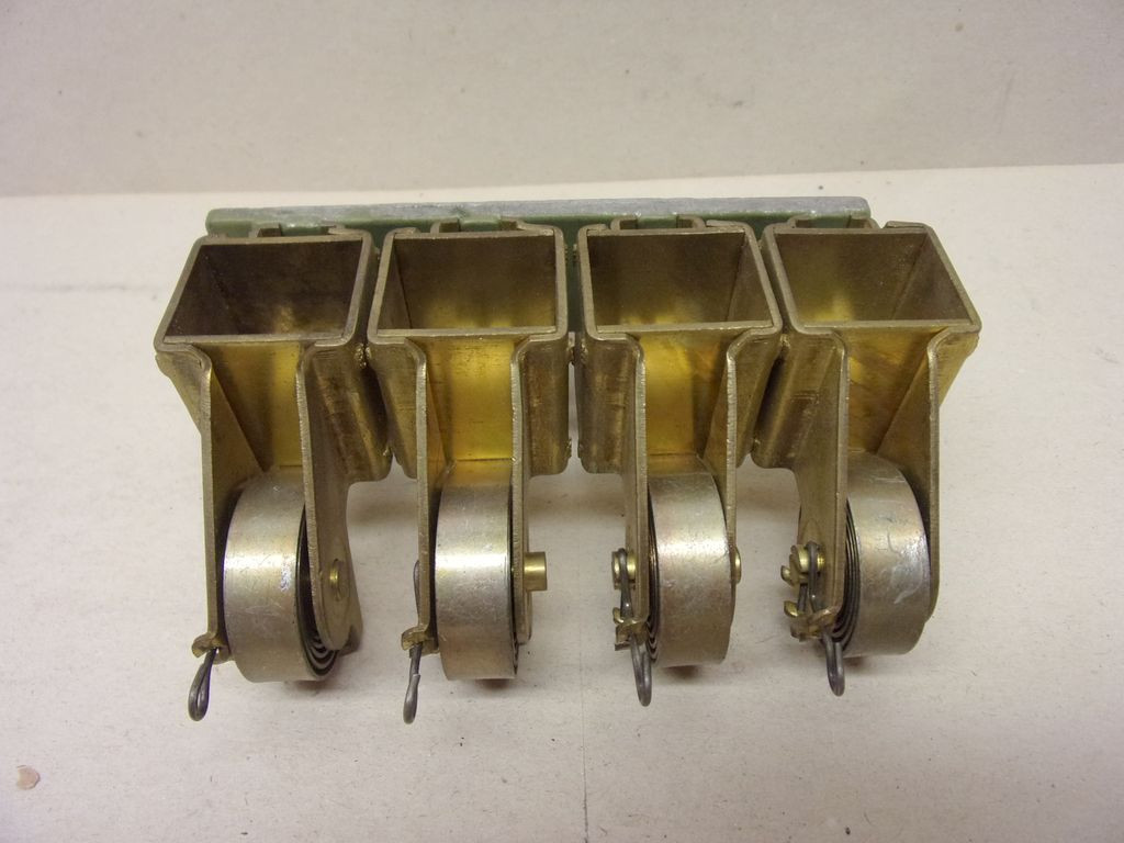 Ipari 4 részes bronzkefe vagy szénkefe tartó, áramszedő, 20x25mm-es bronzkefékhez, 1202149/D-2, 424330, rugós feszítéssel, dinamókhoz, generátorokhoz, villanymotorokhoz, darukhoz, stb.