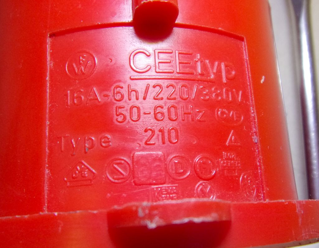 16A/6h/220/380V, Type 210, 5 pólusú csatlakozó, lengő dugvilla, csavaros bekötéssel, xyz