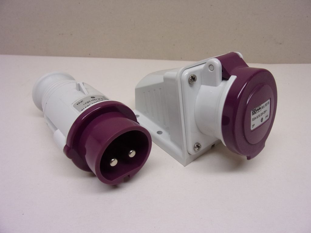 Adatok: 2 pólusú ipari csatlakozó dugó és aljzat, rögzíthető aljzattal és lengő dugóval.