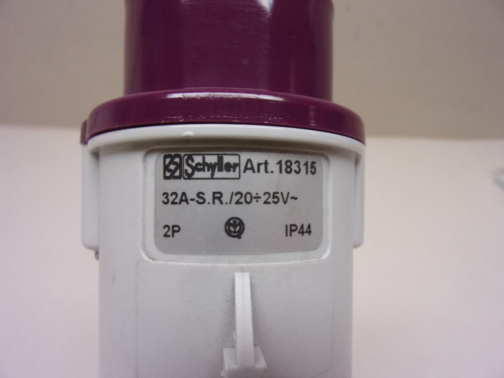 Schyller 18115 + 18315, 2 pólusú 32A ipari csatlakozó-pár, 24 VAC (20...25 VAC), lengő dugvilla + felületre szerelhető aljzat, csavaros bekötéssel, IP 44 (IDE 8324 + IDE 8104)