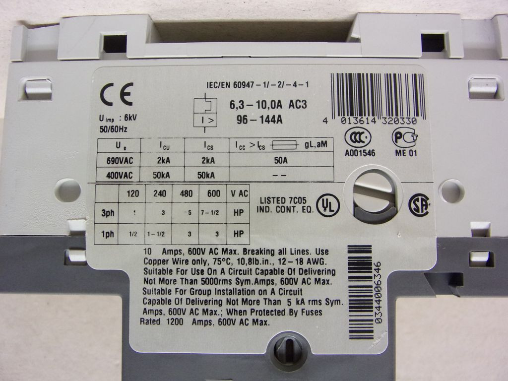 ABB MS 116-10 hőkioldó, motorvédő kapcsoló, 6,3-10A 400VAC,