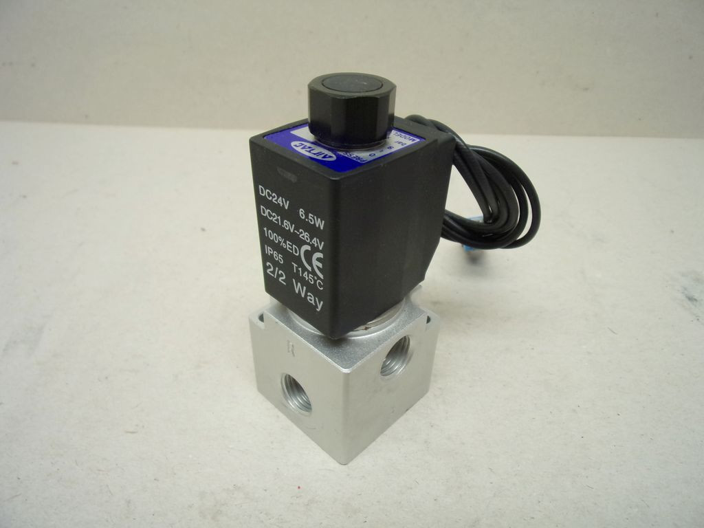AirTac 3V3-08-NC-B, 3/2 utas NC (alaphelyzetben zárt) pneumatikus mágnesszelep sűrített levegőhöz, 24VDC tekerccsel, 1/4" BM,
