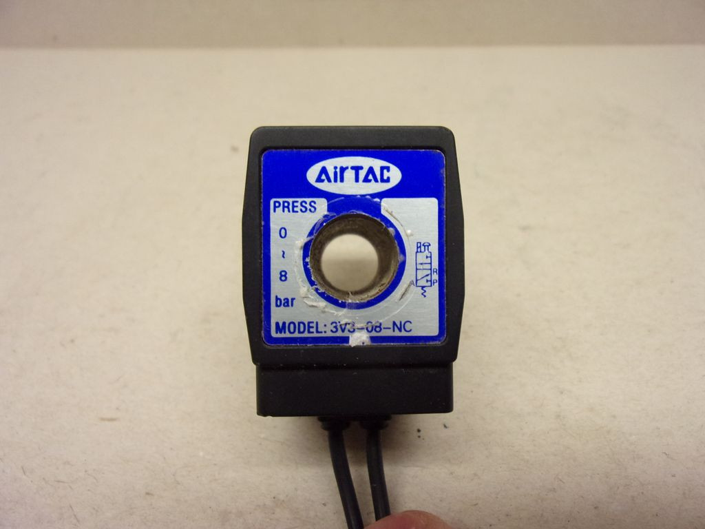 AirTac 3V3-08-NC, 2/2 NC mágnesszelepekhez mágnestekercs, 24VDC 6,5W, 11,5mm magátmérő, 39,5mm hossz, 300mm kábel, IP65