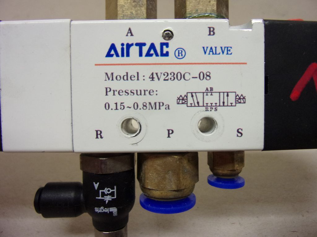 Airtac 4V230C-08-B, Pneumatikus 5/3 mágnesszelep, 0-8 bar, 24 VDC, 10 és 4 mm-es push-in gyorscsatlakozókkal.