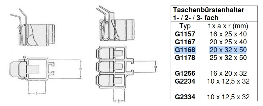 G1168-1 Zsebes kefetartó rugós feszítéssel, 20x32mm-es szén és bronzkefékhez, áramszedő, dinamókhoz, generátorokhoz, villanymotorokhoz, darukhoz, stb.