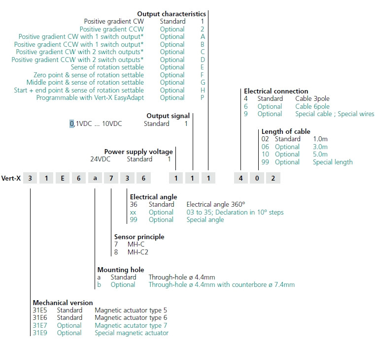 Contelec VERT-X 31E6A736-111-402, 100840B, szögjeladó, helyzetérzékelő, szöghelyzet-érzékelő, 360º 0,3%, 0,1...10VDC kimeneti jel, MH-C verzió, IP68, 10,8...35VDC, 14cm kábellel,