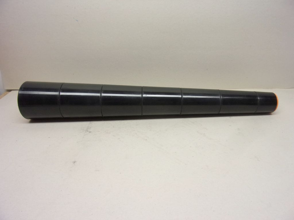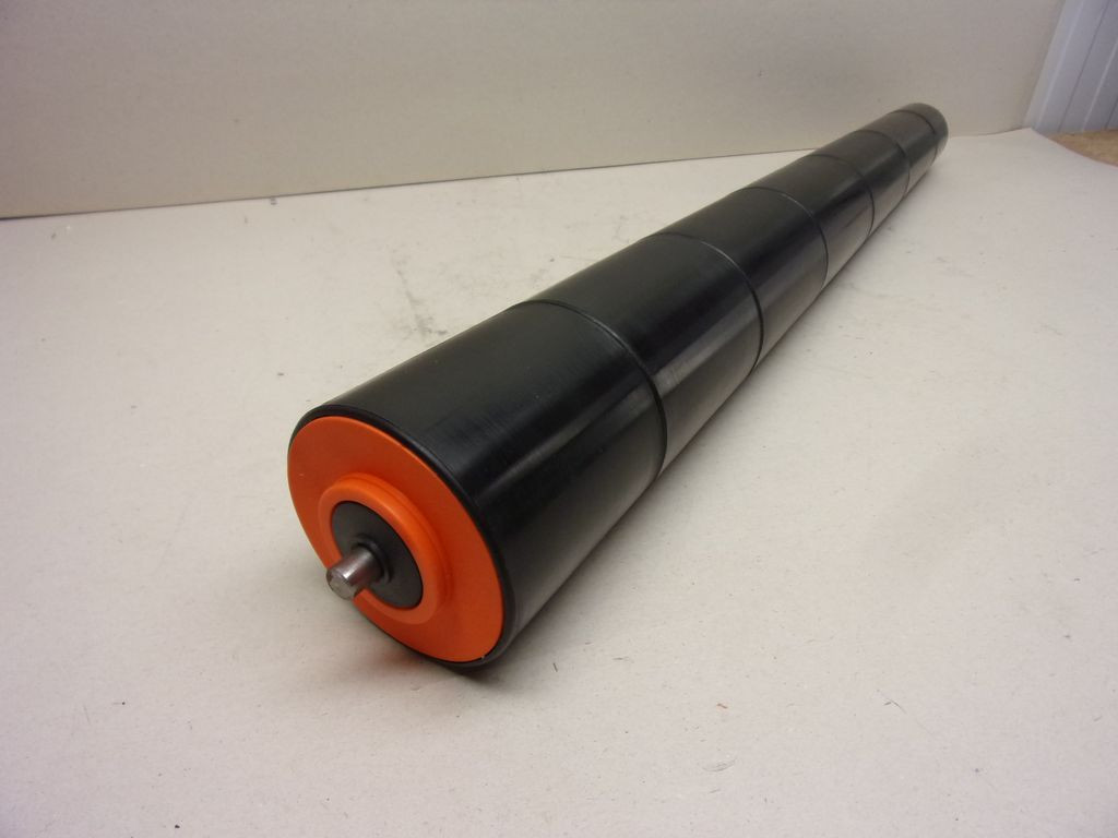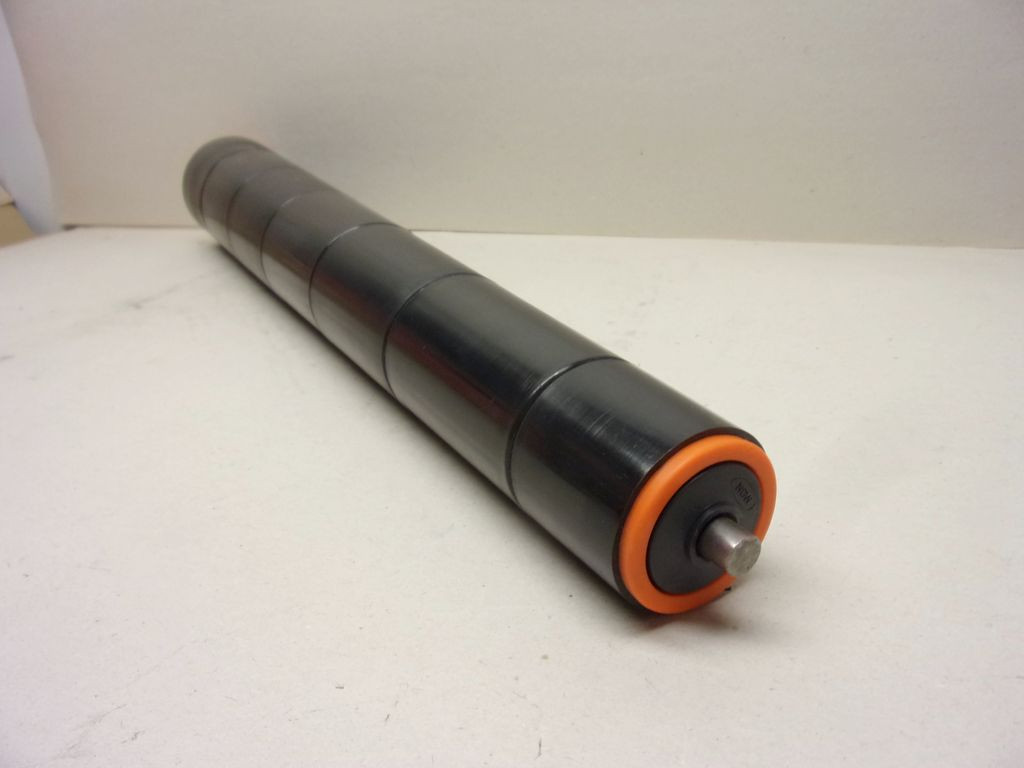 NDW kúpos görgő, 57/110x650 mm, csapágyazott műanyag asszimmetrikus szállítógörgő, 57/100mm átmérő, 650mm hossz, 12mm tengelyátmérő,