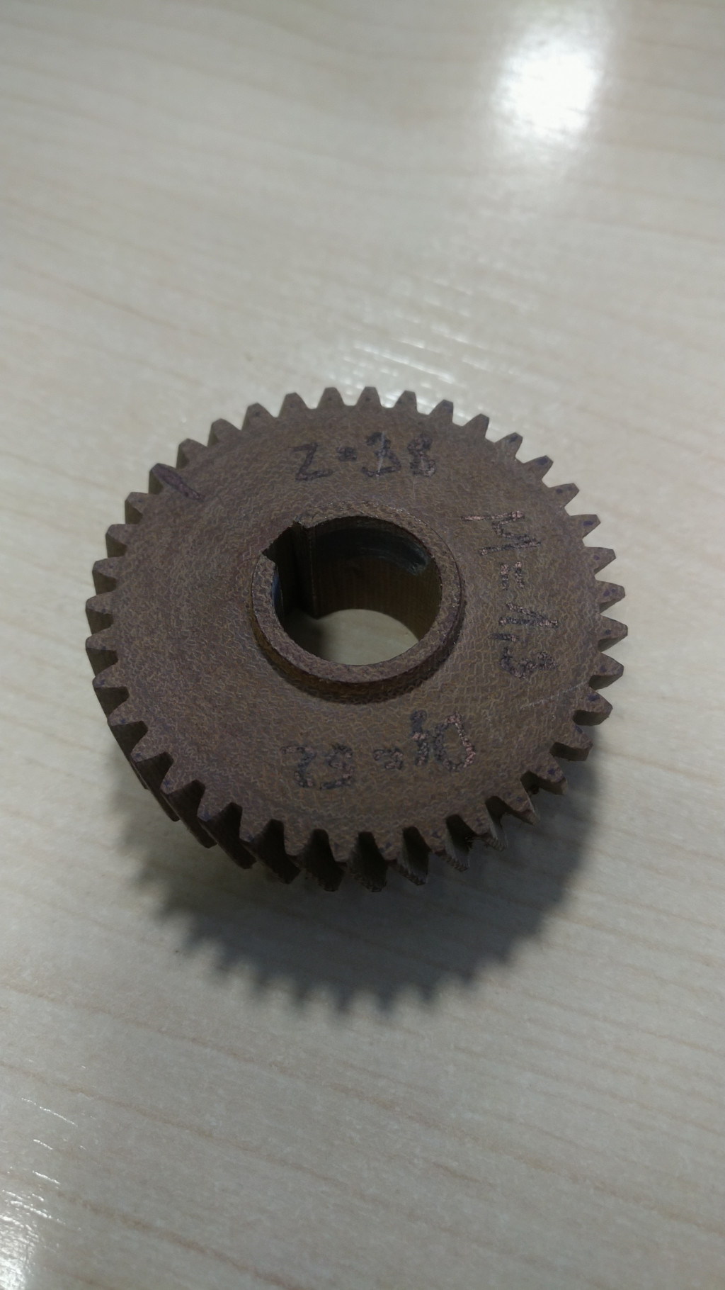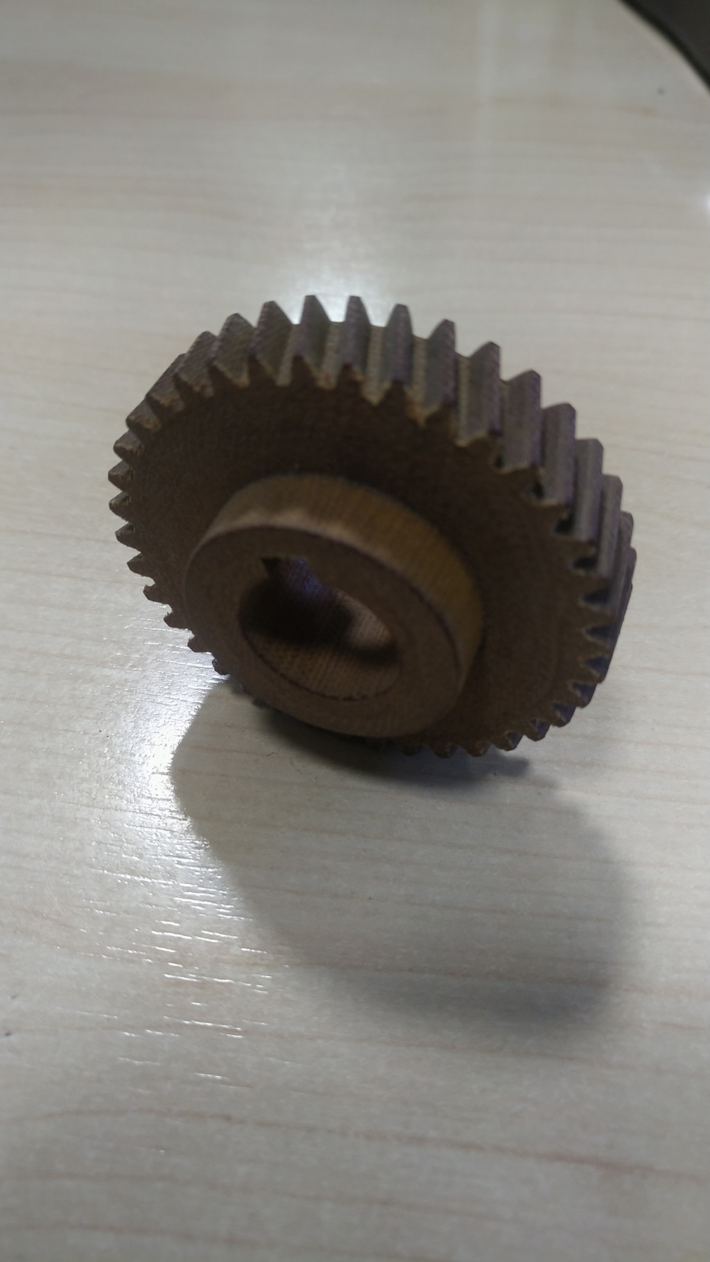 Adatok: Ferde fogazású, készrefúrt textilbalelit fogaskerék, homlokkerék,