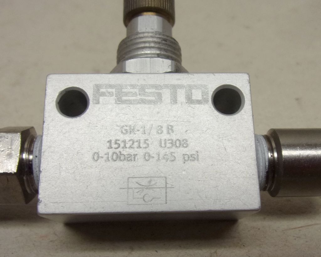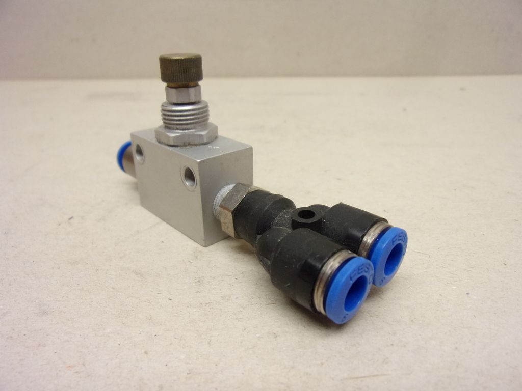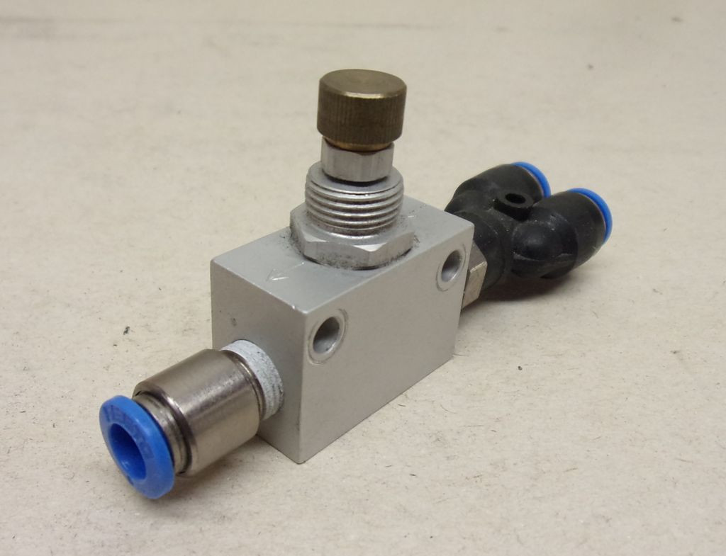 Festo GR-1/8 B, 151215, Fojtó-visszacsapó szelep, 6mm egyenes és "Y" push-in gyorscsatlakozókkal, 210 l/min 0...10 bar, alumínium áramlásszabályozó szelep