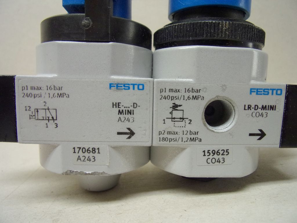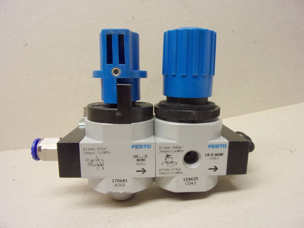 Festo Pneumatikus levegőelőkészítő egység 2 modullal, 170681 HE-D-MINI, kézi On/off szelep + 159625 LR-1/4-D-MINI szelepmodul, 8 és 6 mm-es push-in csatlakozókkal,