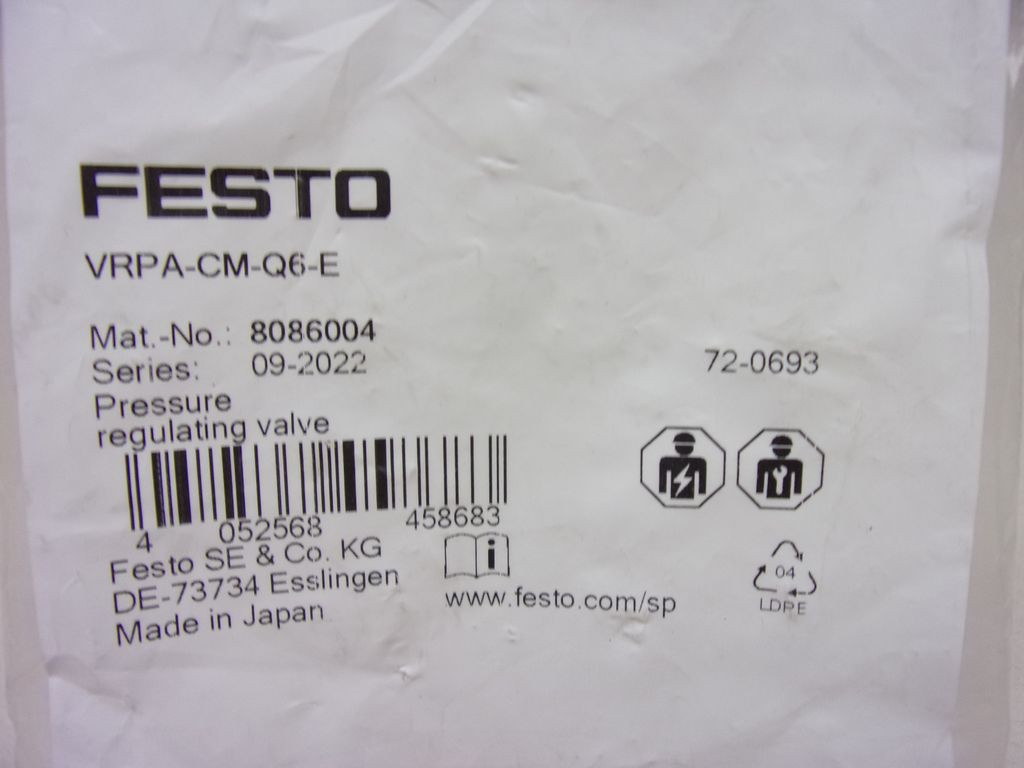 Festo VRPA-CM-Q6-E, 8086004, nyomásszabályozó szelep, QS-6, 6mm push-in csatlakozókkal, 1...8 bar, 90 l/min,