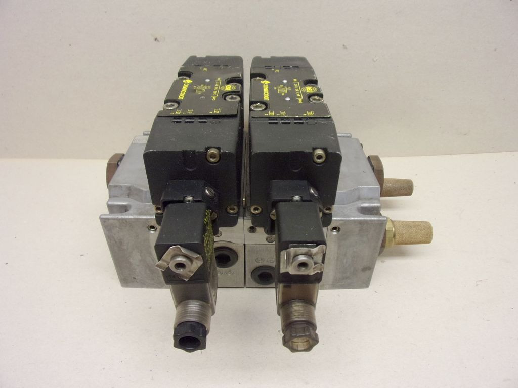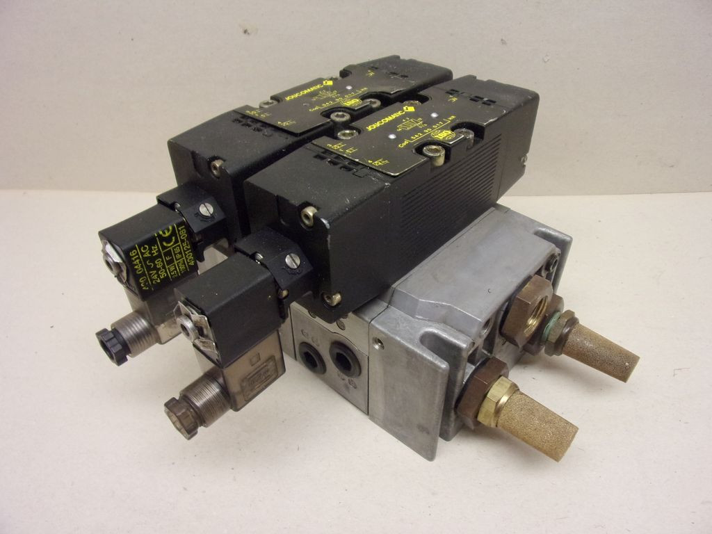 ASCO Joucomatic pneumatikus szeleptömb, 2db. 54290017 5/2 szeleppel, elektromos szelepcsatlakozókkal, 2x 35500101 + 2x 35500102 alapmodulokkal, ISO 5599/1 széria, ISO-2 méret