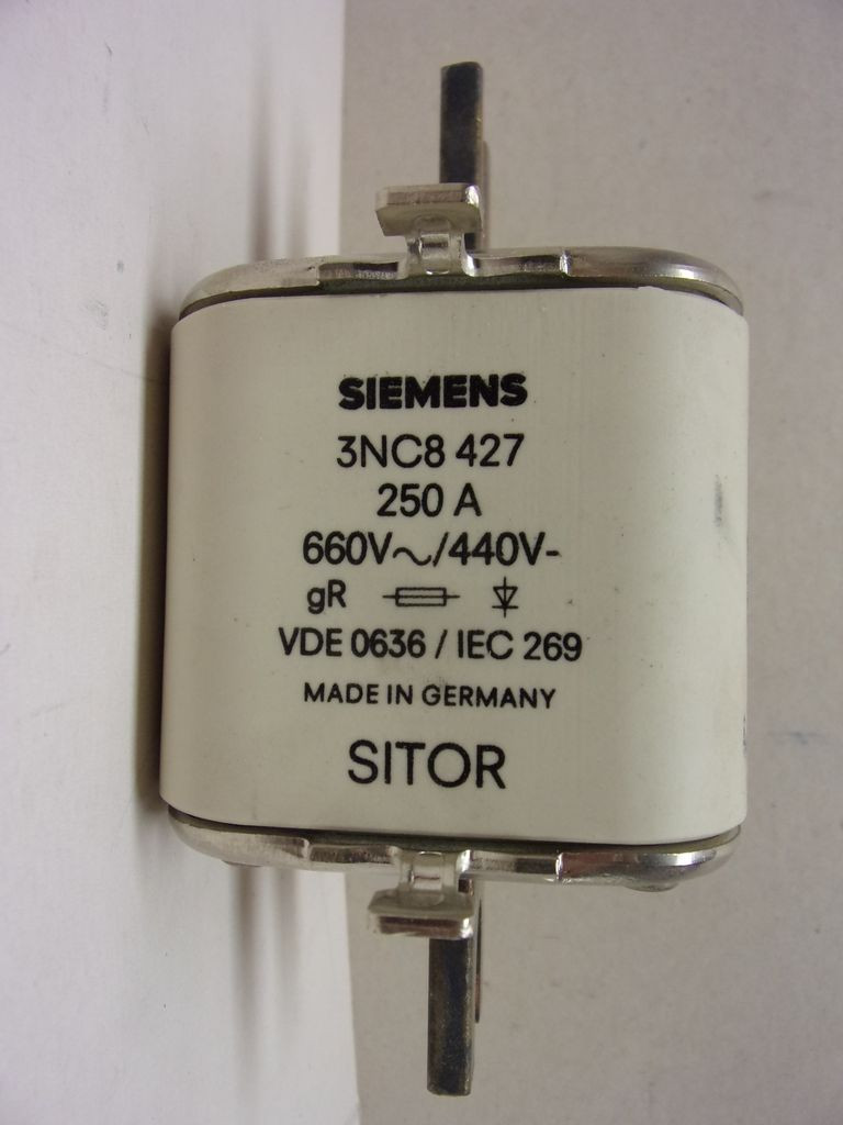 Siemens SITOR 3NC8427, csavaros olvadó biztosíték, Késes biztosíték, 250A 660VAC, gR, NH3, félvezetővédő biztosító betét, első indikátorral,