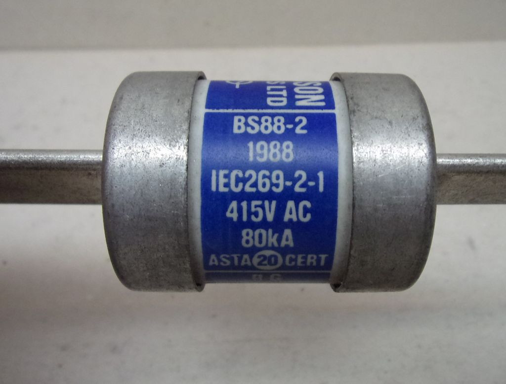 Adatok: 160 A, 415VAC, BS88-2, gG, 80kA, 35 mm átmérő, 134mm késhossz.