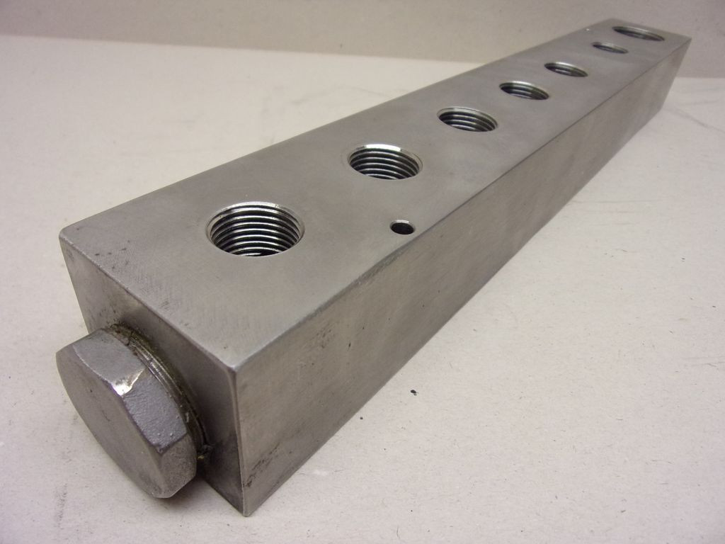 Adatok: Masszív csőelosztó idom, hidraulikához és pneumatikához.