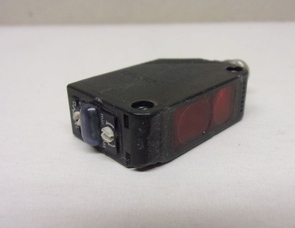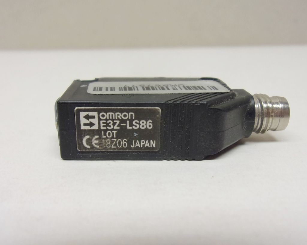 Omron E3Z-LS86 optikai szenzor, fotoelektromos érzékelő, fotocella, reflexiós fénysorompó, 12...24 VDC, M8 4 pin apa, érzékelés: távolságbeállításos 20-200mm, PNP, 100 mA kimenet, téglalap alakú ház, piros LED, világosra/sötétre kapcsolás, használt