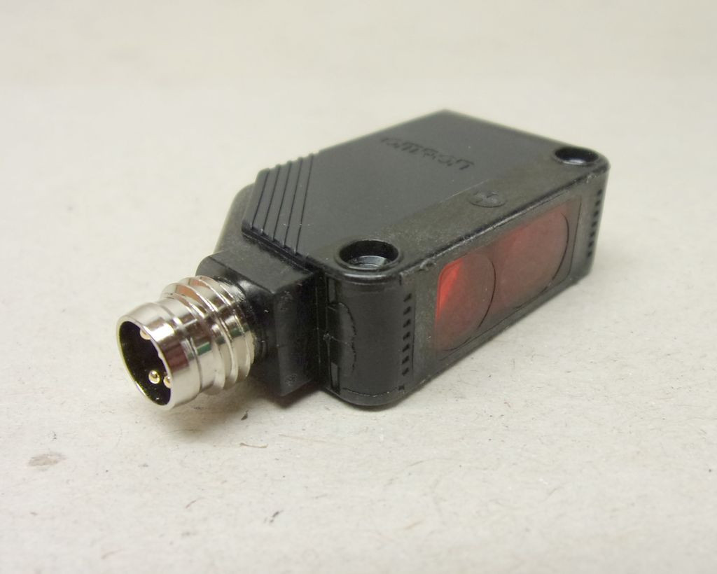 Omron E3Z-LS86 optikai szenzor, fotoelektromos érzékelő, fotocella, reflexiós fénysorompó, 12...24 VDC, M8 4 pin apa, érzékelés: távolságbeállításos 20-200mm, PNP, 100 mA kimenet, téglalap alakú ház, piros LED, világosra/sötétre kapcsolás,