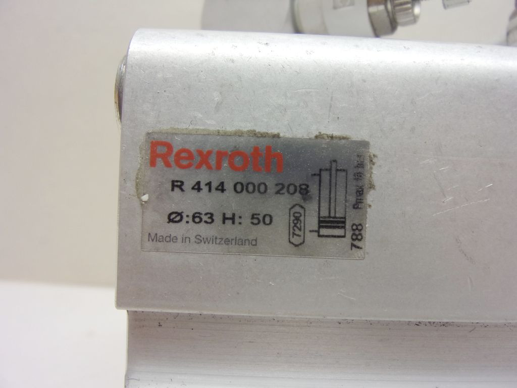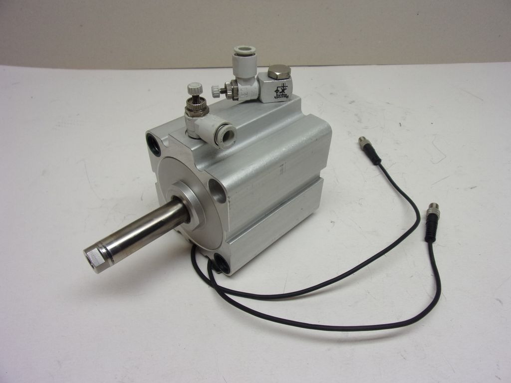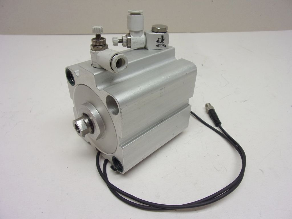 Rexroth R414000208 kettősműködésű kompakt munkahenger, 63mm furat, 50mm löket, 10bar, 0830100435 végállás szenzorokkal, és 8mm-es push-in gyorscsatlakozós áramlásszabályozókkal