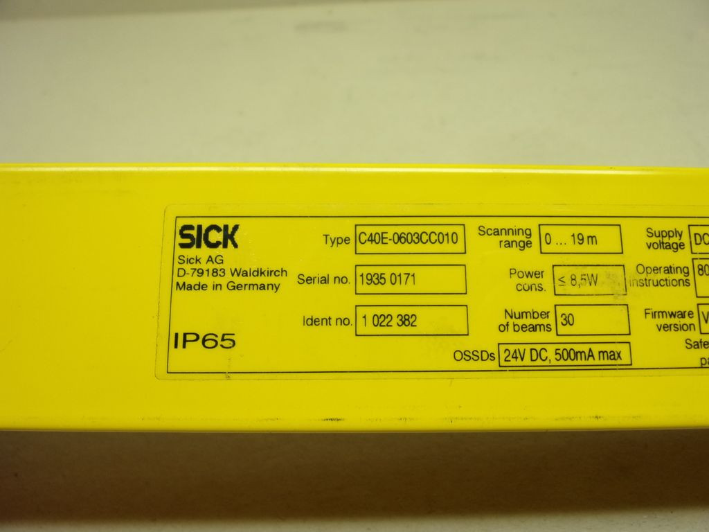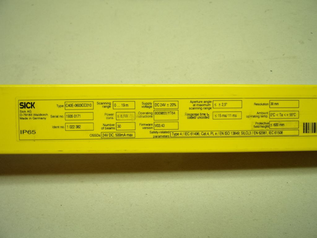 SICK C4000, C40E-0603CC010, 1022382, Biztonsági fényfüggöny, optikai fénysorompó vevő, fénykapu, 0-21m hatótáv, 30mm felbontás, 600mm érzékelési hossz, Többsugaras munkavédelmi fénysorompó