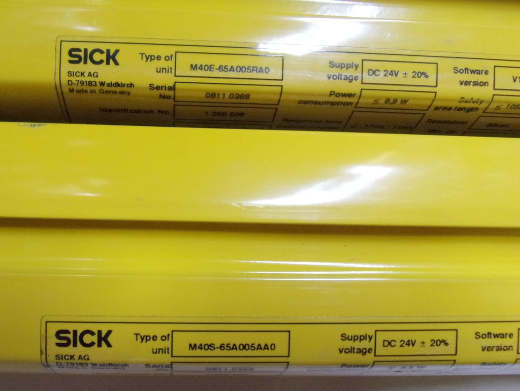 SICK M4000, M40E-65A005RA0, 1200509 + M40S-65A005AA0, 1200507, Biztonsági fényfüggöny pár, optikai fénysorompó adó + vevő, fénykapu, 0-21m hatótáv, 60mm felbontás, 1050 mm érzékelési hossz, Többsugaras munkavédelmi fénysorompó