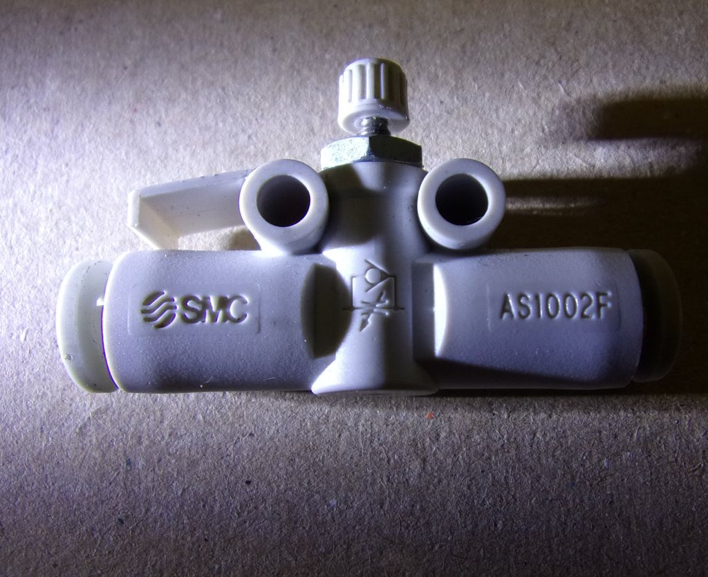 SMC AS1002F-04 fojtó-visszacsapó szelep, áramlásszabályozó, átfolyás szabályozó, 4 mm-es push-in gyorscsatlakozókkal