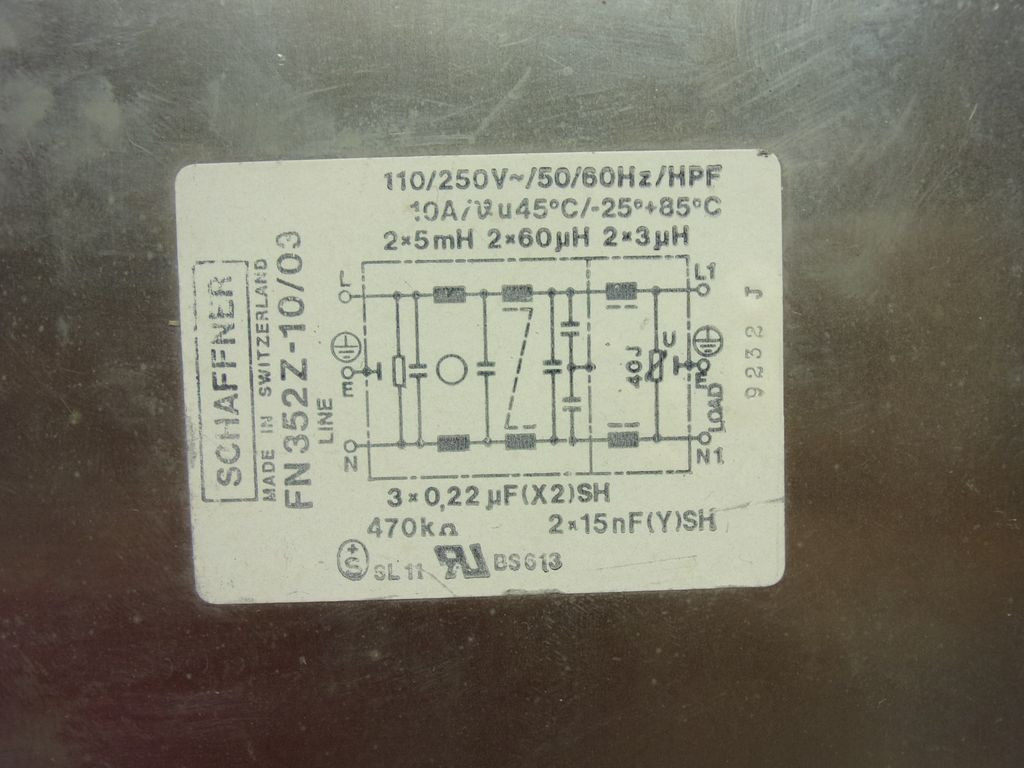 Schaffner FN 352Z-10/03, 110-250VAC 50-60Hz 10A, 1 fázisú hálózati zavarszűrő, vonalszűrő, RFI szűrő, EMC/RFI, EMI filter,