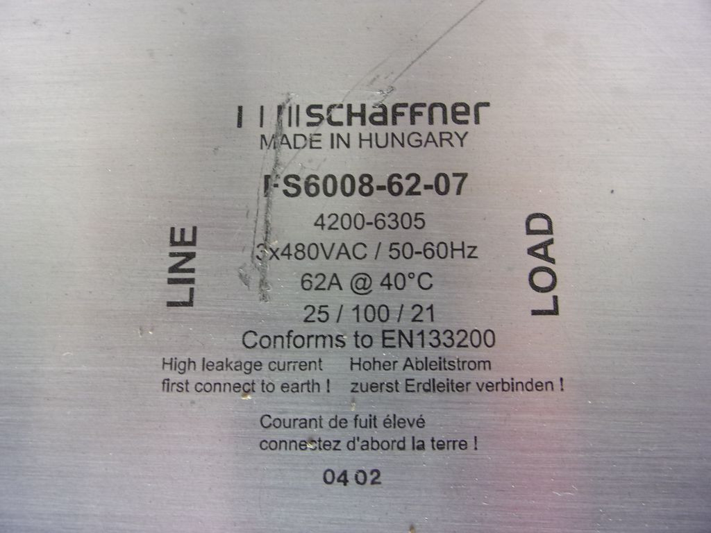 Schaffner FS6008-62-07, 3x 480VAC 62A, 3 fázisú hálózati zavarszűrő, vonalszűrő, RFI szűrő, EMC/RFI, EMI filter,