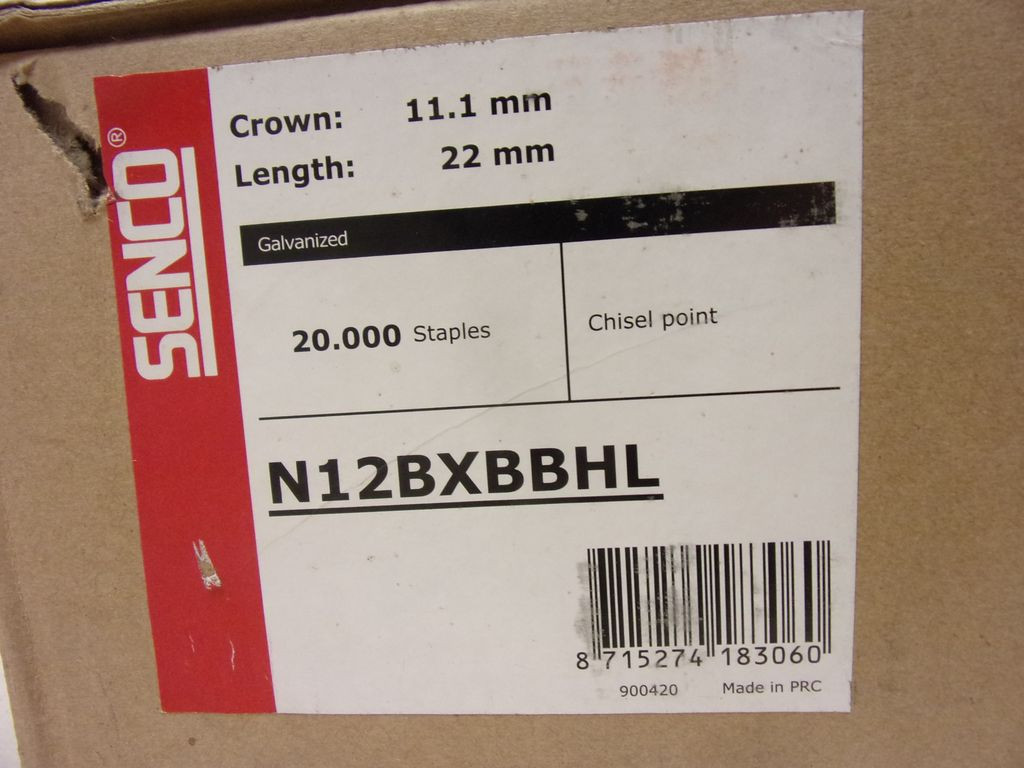 Senco N12BXBBHL, HighLoad Nagy tárkapacitású N tűzőkapocs, tűzőgép kapocs, 11,1 (10,6)x22x1,4 mm, 1,4 mm vastag galvanizált 12 m keményacél, 17700 db./doboz, bontott, Galvanized Staple, (N12BABB)