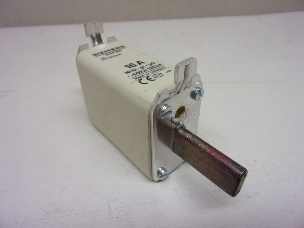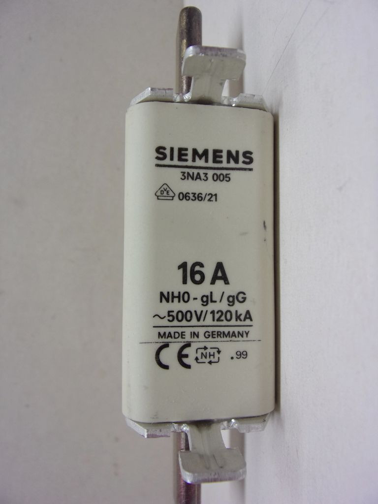 Siemens 3NA3005, Késes biztosíték, 16A 500VAC 440VDC, 120kA, NH0, gL/gG, biztosító betét, első indikátorral,