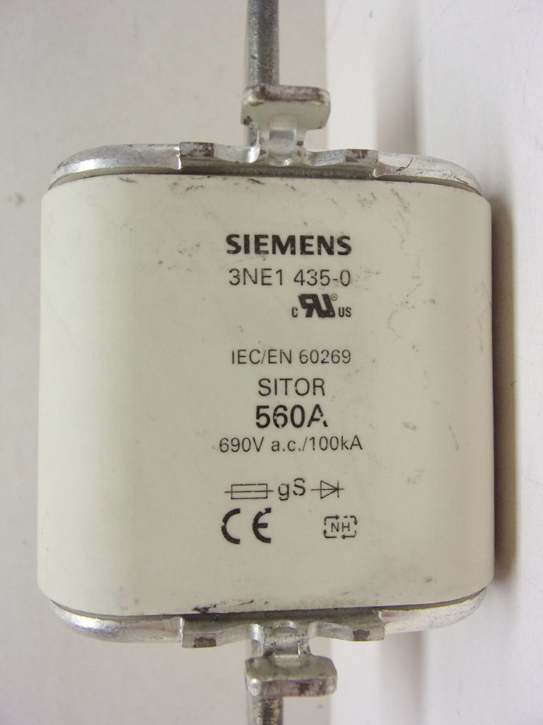 Siemens SITOR 3NE1435-0, Késes biztosíték, 560A 690VAC, 100kA, NH3, félvezetővédő biztosító betét, első indikátorral,