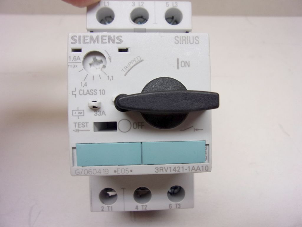 Siemens Sirius 3RV1421-1AA10, 3 fázisú hőkioldó 1,1-1,6A, S0 méretű megszakító Transzformátorvédelemhez, csavaros bekötés