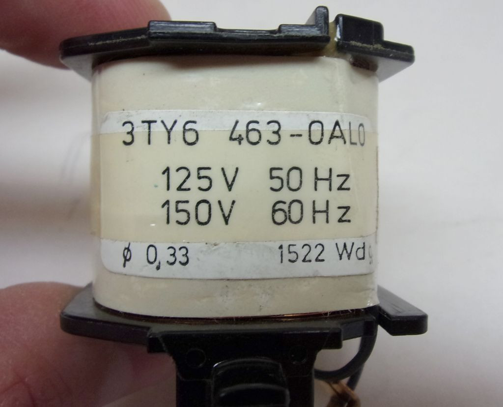 Siemens 3TY6463-0AL0 mágnestekercs, behúzótekercs 3TB46 mágneskapcsolókhoz, 125V 50Hz / 150V 60Hz, 19,5x23,5 mm magméret, szolenoid