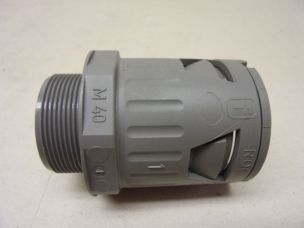 Flexa RQG-M AD42,5/M40gr, 5020037040 Tömlőcsatlakozó gégecsövekhez, M40 menettel, AD 42,5, műanyag, tömszelence, egyenes csatlakozó bordás tömlőhöz, IP67
