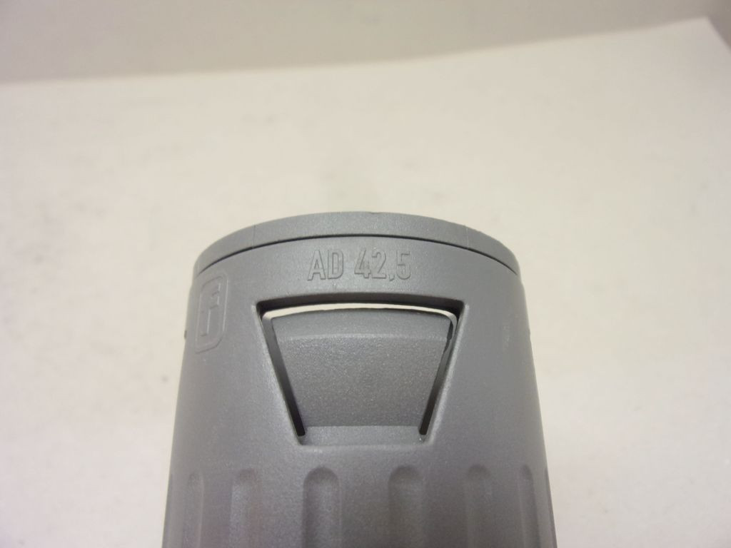 Adatok: Tömlőcsatlakozó gégecsövekhez, M40 menettel, AD42,5, műanyag, tömszelence, egyenes csatlakozó bordás tömlőhöz, IP67