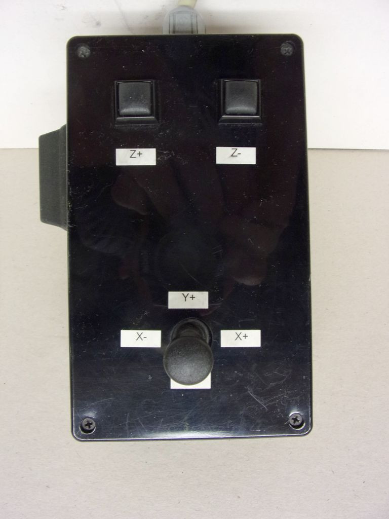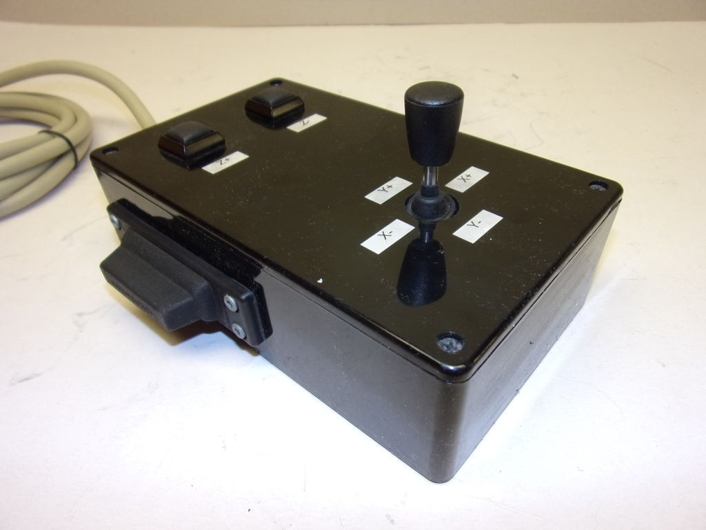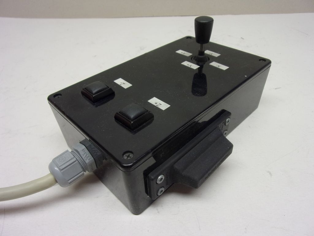 Adatok: Vezérlődoboz, karos kapcsolóval, nyomógombokkal, dobozolva, 2 tengely vezérléséhez.