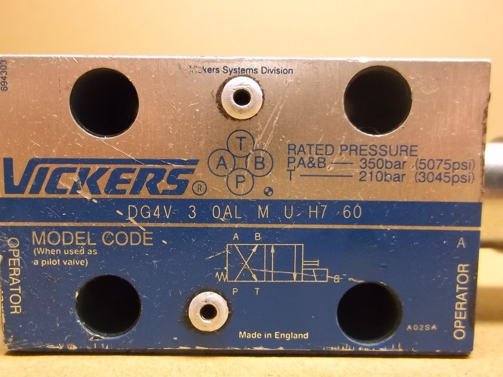 Mágnesszelep, útváltó 4/2 szelep, 350 bar, tekercs nélkül, Cetop3, Vickers DG4V-3-0AL-M-U-H7-60 DG4V30ALMUH760 870355, H507848, xyz