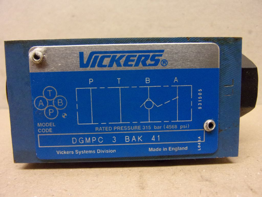 Vickers DGMPC-3-ABK-BAK-41 DGMPC3ABKBAK41, 694400, Váltvaforgató pilot működtetésű hidraulikus visszacsapó szelep, 315 bar, A és B port, 1bar nyitás, CETOP3, Pilot Operated Check valve, 315 bar (4500 psi), 60 L/min (16 USgpm)