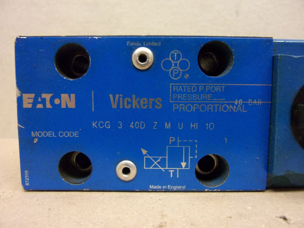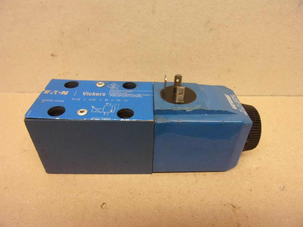Vickers KCG-3-40D-Z-M-U-H1-10, 02-145945 hidraulikus arányos nyomáscsökkentő, proporcionális szelep, 40 bar, 24VDC 1,6A tekercs, Cetop3, 02-123993 (24VDC) mágnestekercs, KCG340DZMUH110, használt