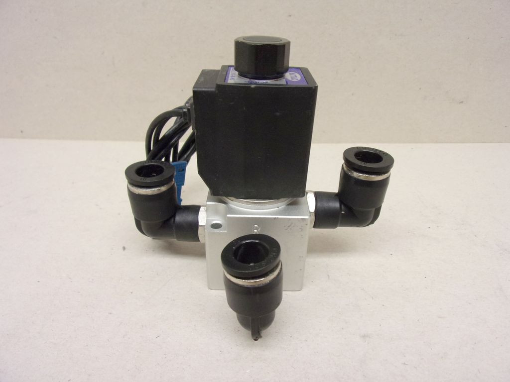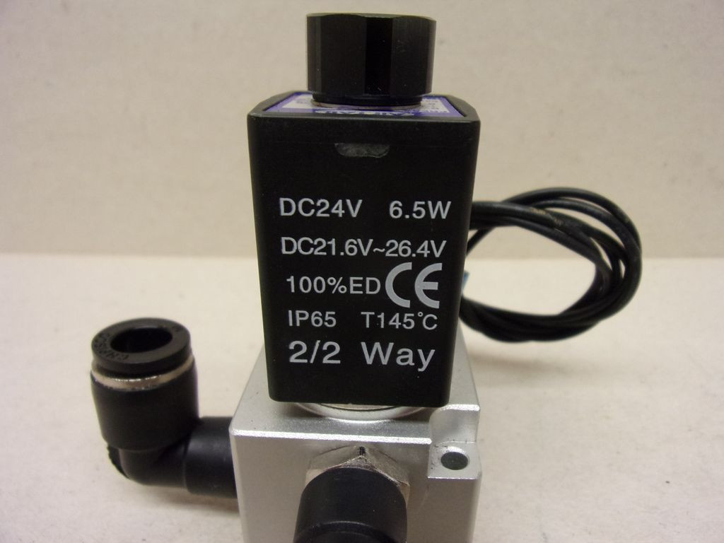 AirTac 3V3-08-NC-B, 3/2 utas NC (alaphelyzetben zárt) pneumatikus mágnesszelep sűrített levegőhöz, 24VDC tekerccsel, 1/4" BM, és 3 darab 10mm-es push-in gyorscsatlakozóval