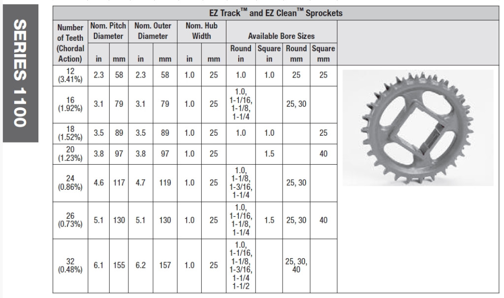 Típus: S3E1I6CDM3LS-00, S1100 EZ Track™ és EZ Clean™ lánckerekek